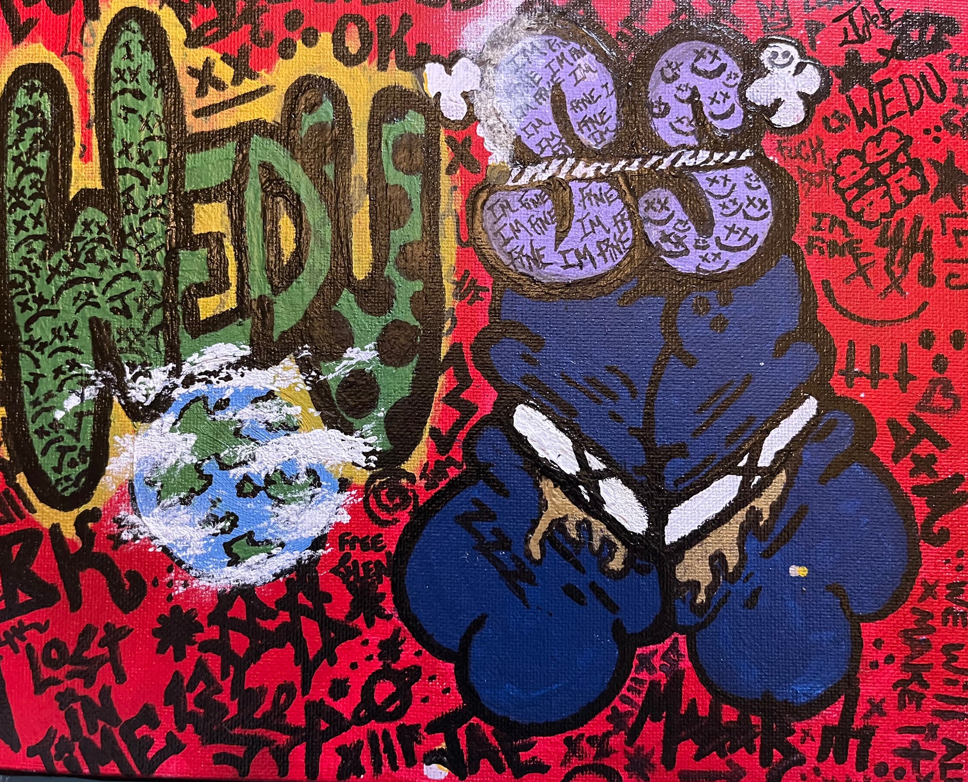This first piece is more than paint on canvas—it’s a release of energy, chaos, and vision. Every line, every word, every color speaks to starting from nothing and creating something loud, raw, and real. It’s just the beginning