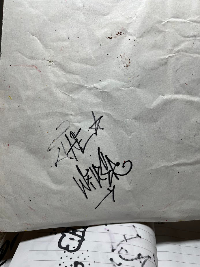 This vibrant piece, made entirely with crayons, captures a playful and psychedelic twist on a familiar cartoon dog. The colorful red, yellow, and green waves radiate outward, giving the artwork a sense of motion and energy that draws the viewer in. The use of bold outlines and layered crayon texture adds depth and character, creating a fun, eye-catching, and slightly trippy visual that feels alive with personality