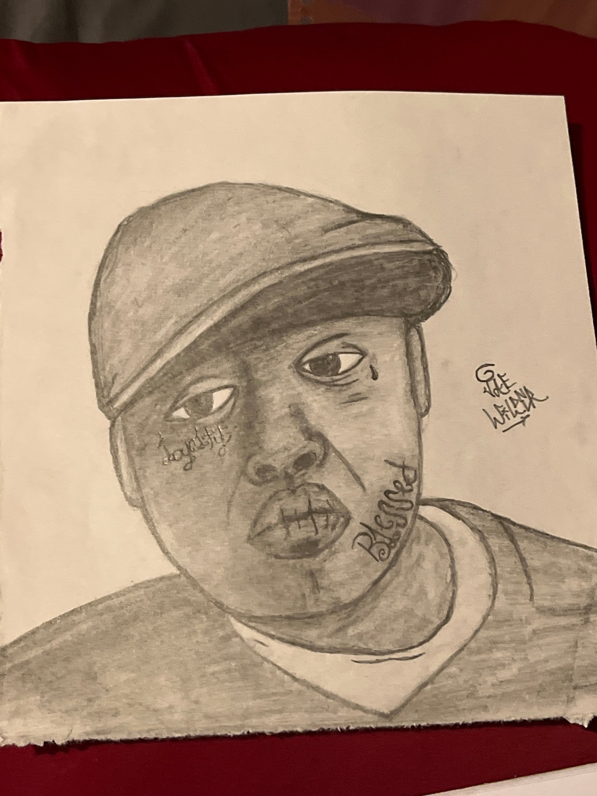 This pencil drawing, titled “Loyalty,” captures a deep sense of reflection and resilience. The subject’s steady gaze and the etched words on his face — Loyalty and Blessed — tell a story of strength, faith, and lived experience. The soft shading and expressive detail give the portrait a raw emotional depth, reminding viewers that true loyalty is often written not in words, but in the struggles and endurance of life.